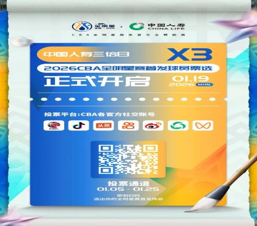 2026 CBA全明星周末再临诸暨,首发球员的票选通道已在1月5日0点开启,每日可进行1次投票,每日0点刷新投票机会,投票截止于2026年1月25日23:59:59,来为发挥亮眼的“老六”投票吧!