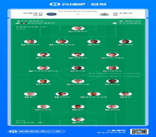 体育播报1月29日宣 北京时间凌晨4点,欧冠联赛阶段第8轮,巴黎圣日耳曼主场迎战纽卡斯尔联,赛前双方公布首发阵容。