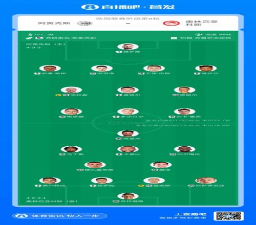 体育播报1月29日宣 北京时间凌晨4点,欧冠联赛阶段第8轮,阿贾克斯主场迎战奥林匹亚科斯,赛前双方公布首发阵容。