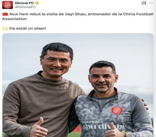 赫罗纳社媒写道:今天我们接待了中国国家队主帅邵佳一的来访。
