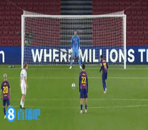 拉菲尼亚主罚打进,巴萨3-1领先。