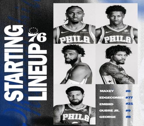 76人这边,恩比德进攻端相当高效,10投7中(三分1中1),罚球4中4,拿到19分2篮板3助攻1盖帽;马克西能突能投,10投7中(三分7中4),罚球5中5,拿到23分4篮板6助攻1抢断。