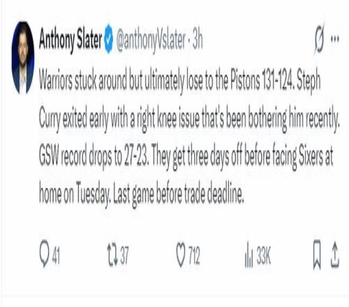 根据勇士队记安东尼-斯莱德的报道,末节库里一直滞留在更衣室中,他一直都在尝试膝盖的感觉,过去一周库里都饱受膝盖伤病的困扰。