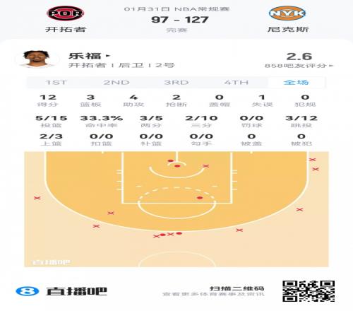 开拓者落选秀乐福 登场27.2分钟