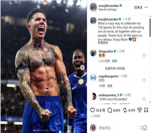 此役是恩佐为切尔西出战的第150场比赛,恩佐社媒晒出庆祝的照片,并写道:“多么疯狂的方式来庆祝我为这家俱乐部出战的第150场比赛啊!在主场与我们的球迷一起取得精彩胜利。”