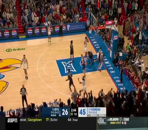 体育播报02月01日宣 NCAA常规赛焦点战,堪萨斯大学在主场以90-82击败杨百翰大学,取得五连胜。